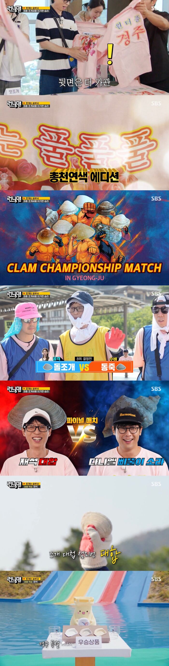 [스브스夜] '런닝맨' 조개 싸움 대전···최종 승자는 최다니엘의 '삐뚤이 소라' 무너뜨린 유재석의 '백합'
