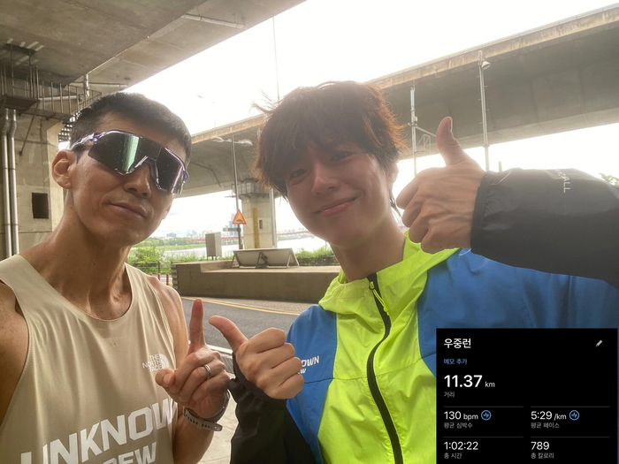 션, 박보검과 11km 우중런 인증…“청량미 뿜뿜”