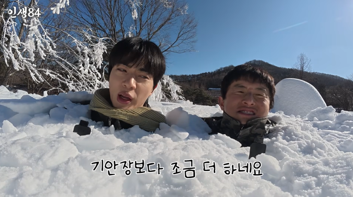 BTS 진, 눈더미 속 ‘근본 없는’ 컴백 신고식…기안84 “너 나 때문에 떴어”