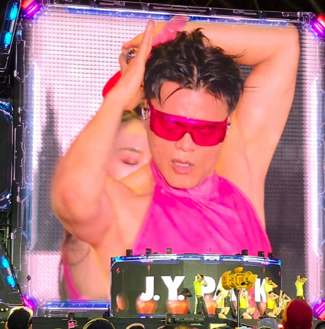 박진영, 이날을 위해 체중감량…워터밤 찢은 핑크 시스루 패션