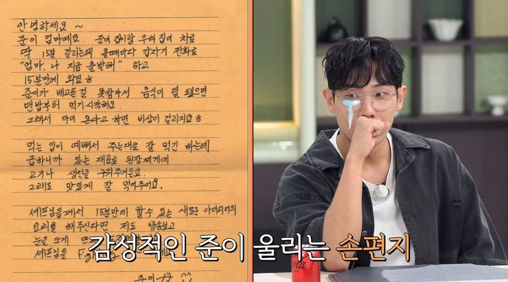 ‘냉부’ 셰프들, 이준 엄마 손편지에 감동 “15분 아이디어 부탁드려요”[결정적장면]