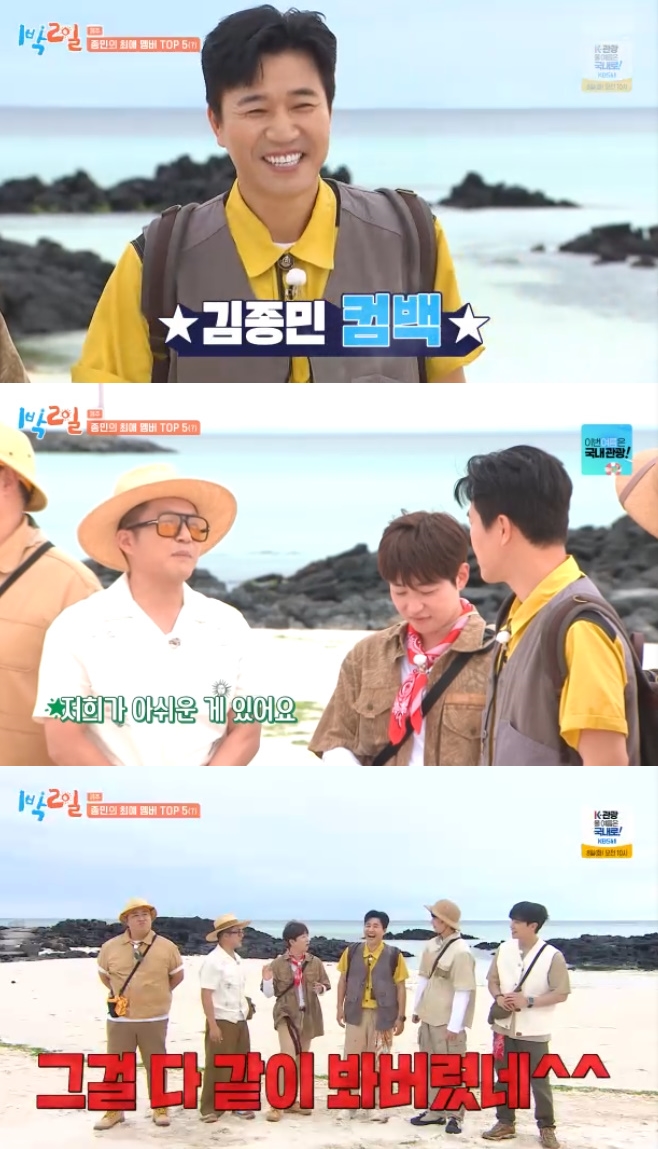 '1박2일' 김종민 신혼여행 후 귀환, 조세호 "샤워기 틀고 울었다" [TV나우]