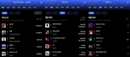 에스파·아홉·크래비티, 7월 1주 한터 주간차트 '정상'