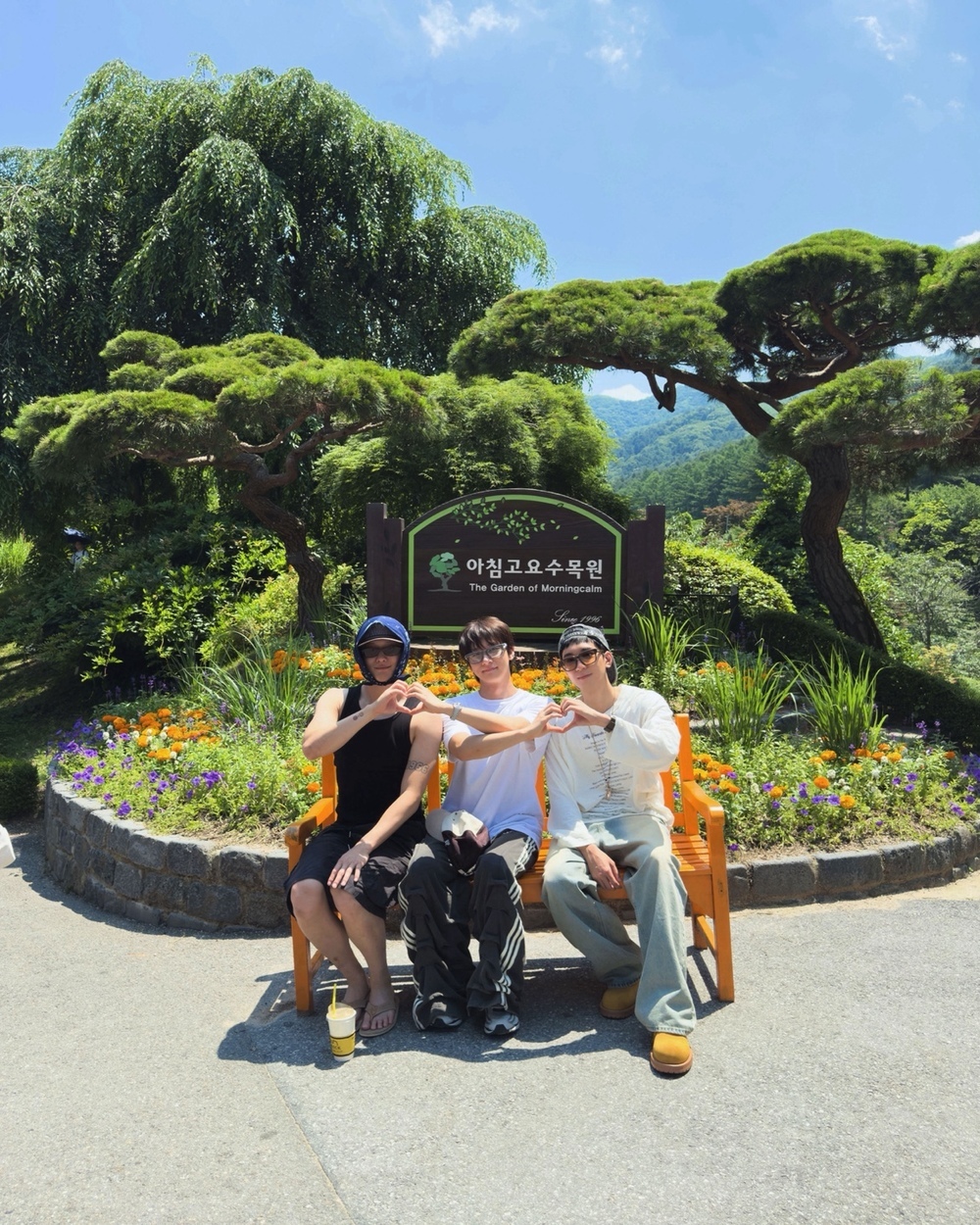 세븐틴 원우·몬스타엑스 아이엠·우즈, 남자 셋 수목원 데이트 포착