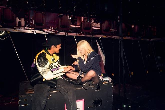 블랙핑크 로제X브루노 마스, 콘서트 무대 뒤에서도 알콩달콩