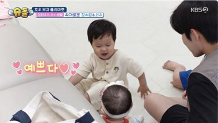 [SC리뷰] 김준호, 벌써 시아버지 되나…子정우, 장수원 딸에 "예쁘다" 홀릭('슈돌')