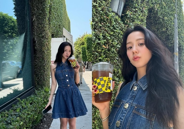 데님원피스 입은 블랙핑크 지수, 美 LA 빛낸 청순 아우라
