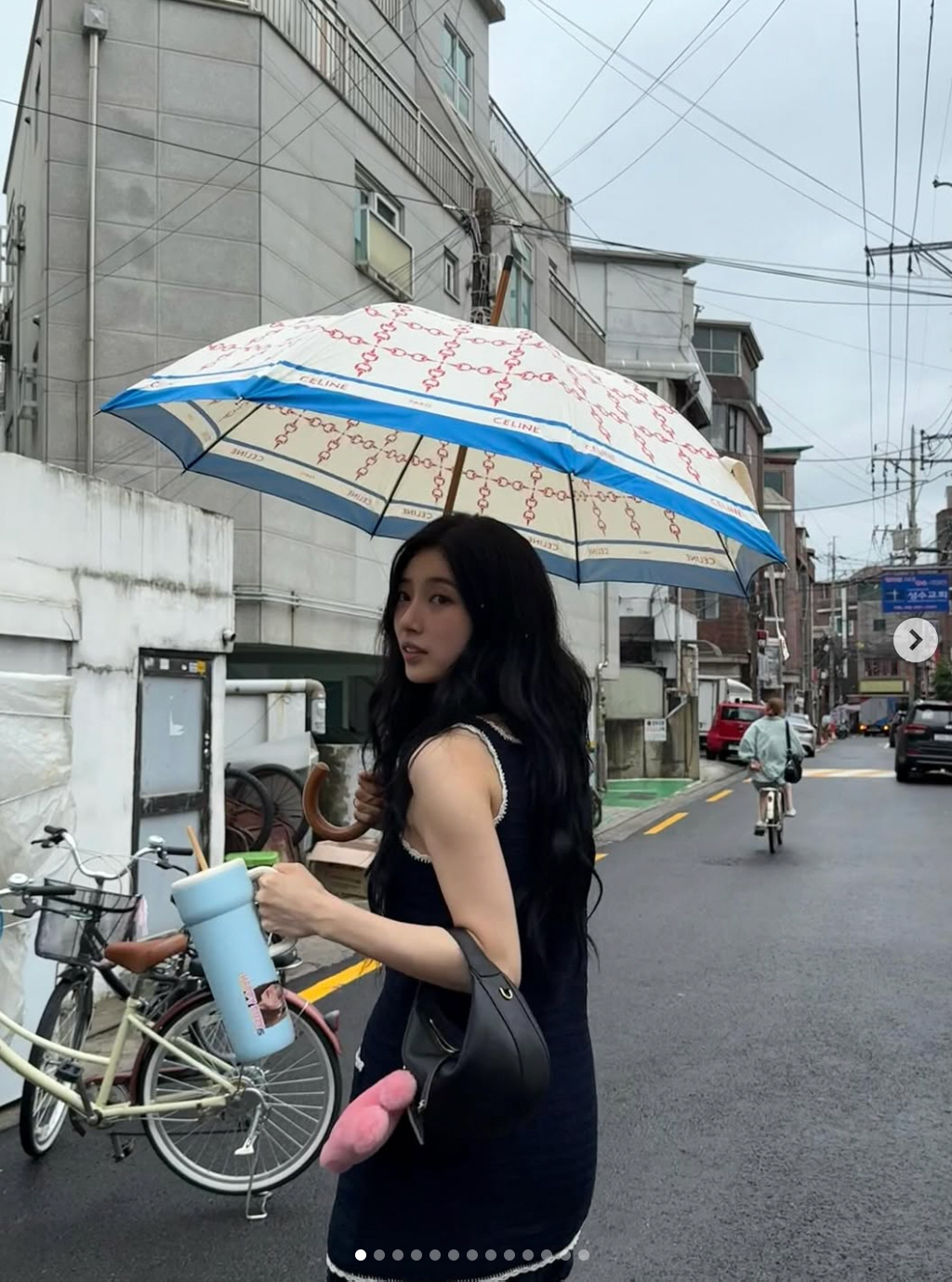 수지, 폭우에 '명품 우산' 꺼내 들었다..우아한 '우중 패션'의 정석