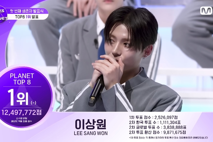 '보이즈 2 플래닛' 첫 번째 생존자 발표식…이상원 굳건한 1위