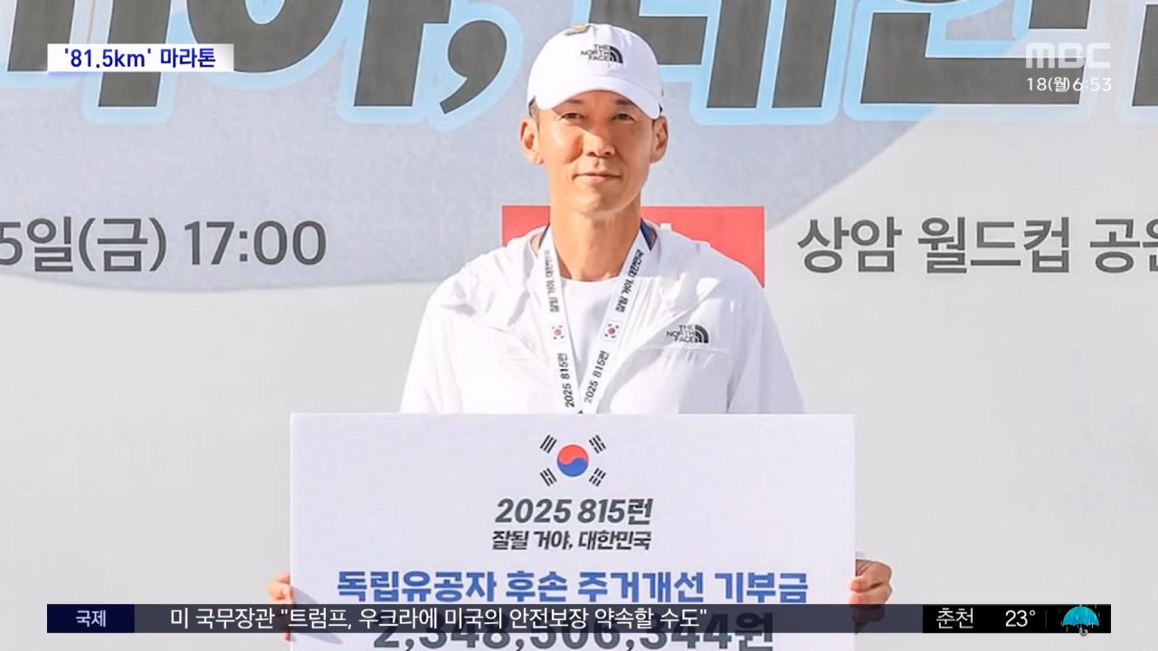 [문화연예 플러스] 가수 션, 광복절 맞아 81.5km 완주 이어 기부