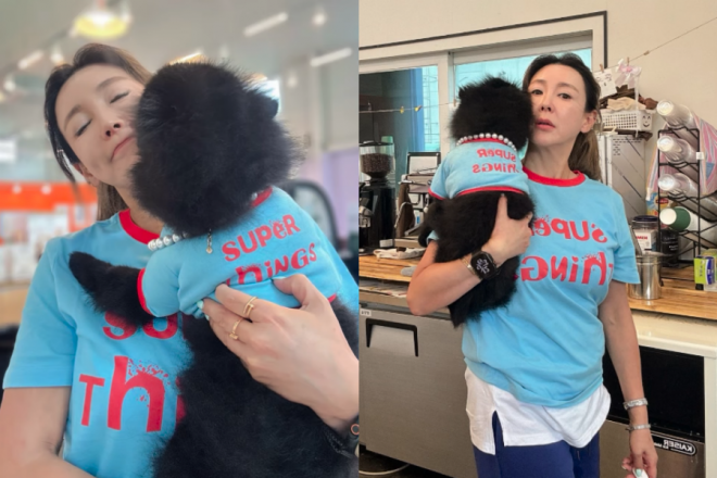 ‘원조 책받침 여신’ 이상아, 반려견과 ‘상큼 커플룩’ 선보여