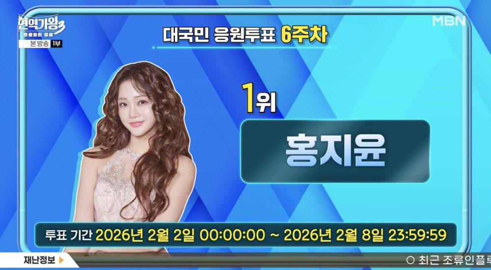 홍지윤, '현역가왕3' 대국민 응원투표 굳건한 1위…2위 강혜연・3위 이수연
