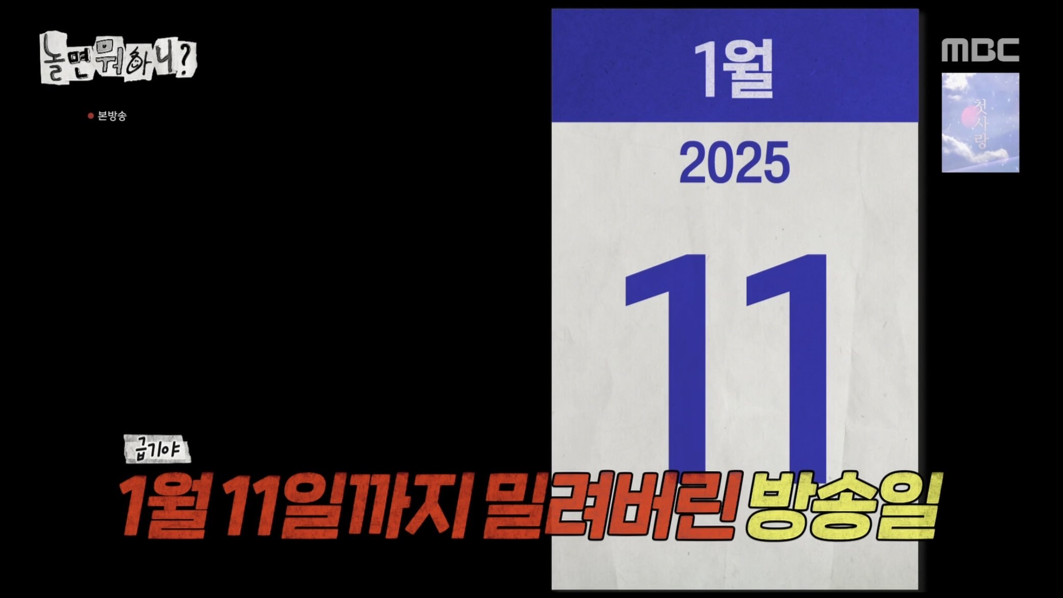 '비상계엄→국가애도기간' 결방 '놀뭐'…제작진 "철 지난 크리스마스 방송" 양해 [종합]
