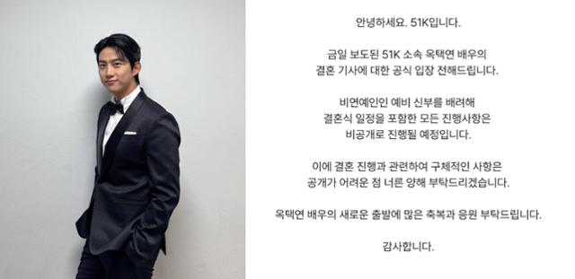 옥택연 측 "비연예인 예비 신부 배려 위해 결혼 일정 비공개"