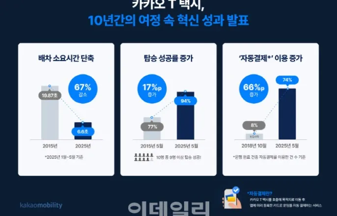 6.6초 이내 배차, 10명 중 9.4명 탑승…카카오T 택시 '10년' 성과