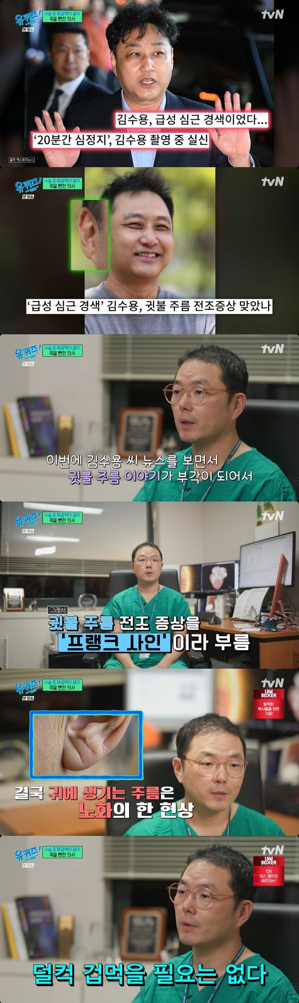 '급성 심근경색' 김수용, '귓불 주름' 오해 벗었다…유재석 교수 "노화 현상" (유퀴즈)