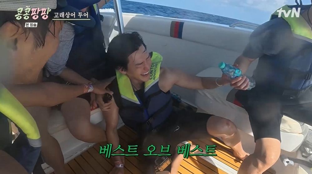 김우빈 수난시대…"제일 초라해 보여" 보트서 꽈당→뱃멀미까지 ('콩콩팡팡')