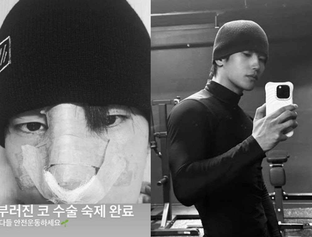 육준서, 코 수술 받은 근황 "부러진 코 숙제 완료...안전 운동하길" [RE:스타]