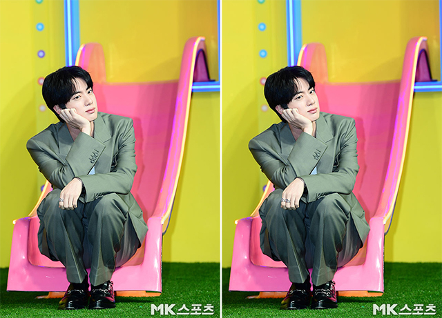 방탄소년단 진 ‘멋진 슈트패션으로 핑크 미끄럼틀에 쪼그려 앉은 BTS’ [틀린그림찾기]
