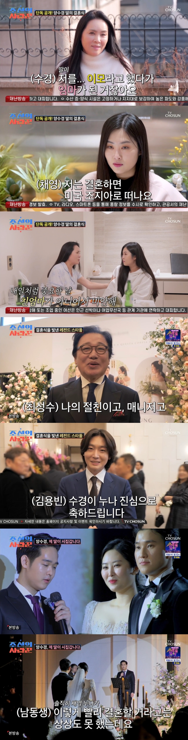 "친엄마가 아니라 미안해"…양수경, 눈물의 딸 결혼식 현장 (조선의 사랑꾼) [TV캡처]