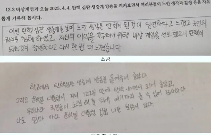 “당연하고 감사”…윤석열 대통령 탄핵 선고 생중계 본 중학생들의 소감
