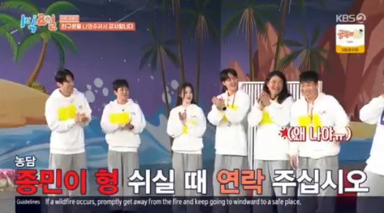 '재출연 희망' 덱스 "종민이 형 쉴 때 연락주세요" (1박 2일)