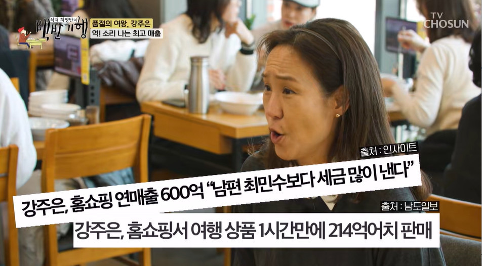 강주은, 홈쇼핑 2시간만 214억 매출 “♥최민수보다 세금 많이 내” (백반기행)[결정적장면]