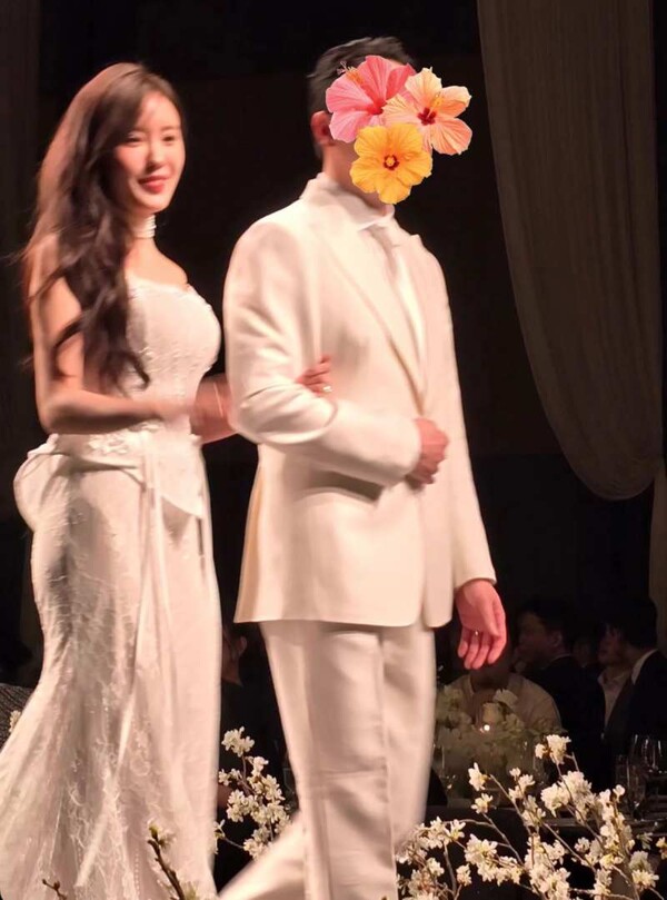 유부녀 된 티아라 효민, '금융업' 신랑 팔짱 끼고 '방긋'…드레스 핏 '나이스'