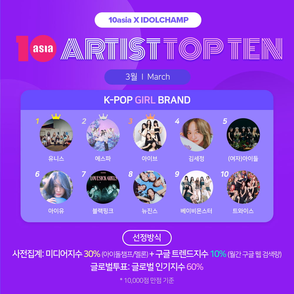 유니스·에스파·아이브, 3월 '아티스트탑텐 K-팝 걸 브랜드' 주인공