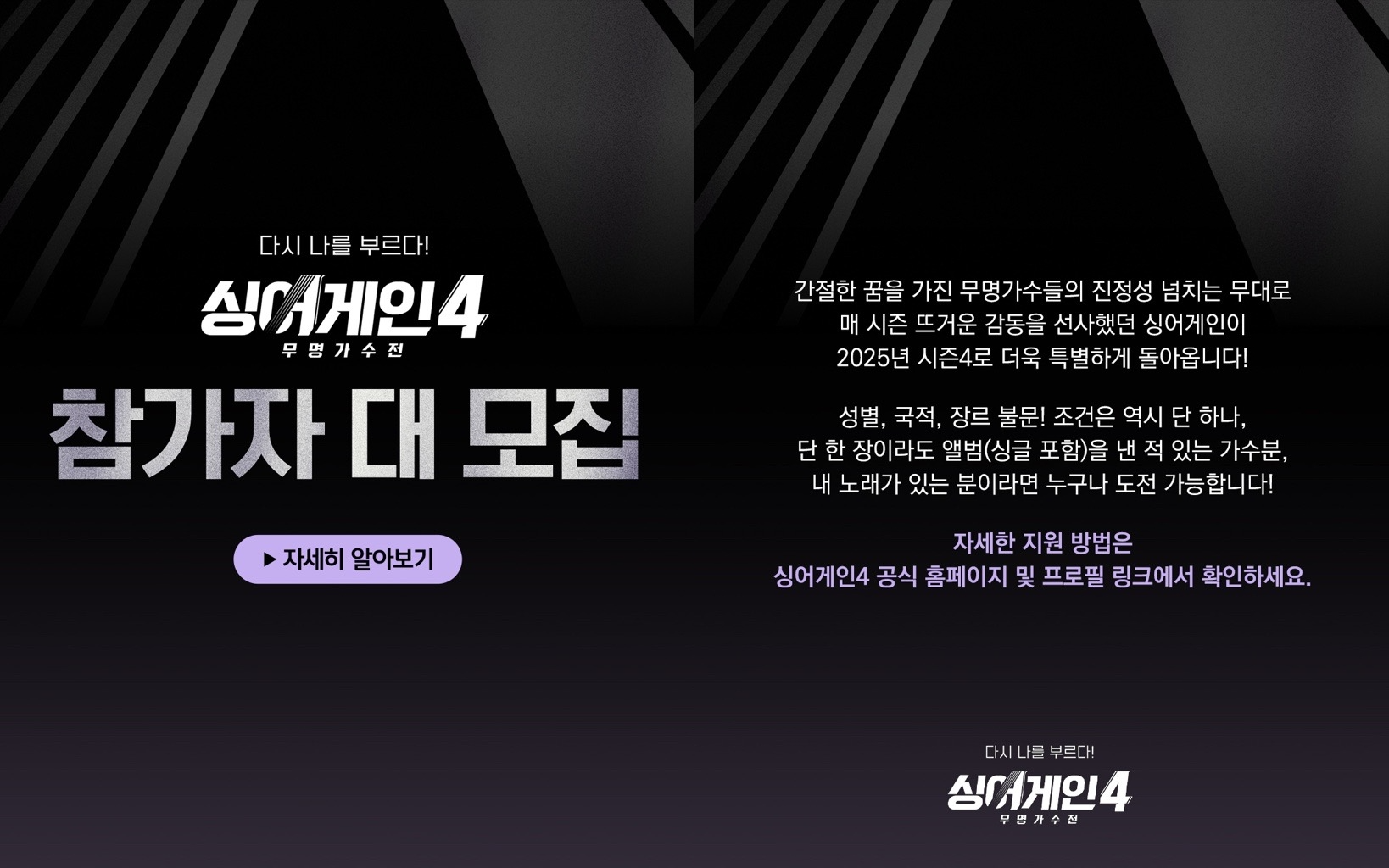 '다시 나를 부르다!' '싱어게인4' 제작 확정 & 참가자 모집 시작