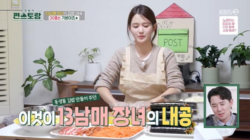 13남매 장녀 남보라 “김밥 800줄 싼 적도 있어, 10시간 걸렸다”(편스토랑)