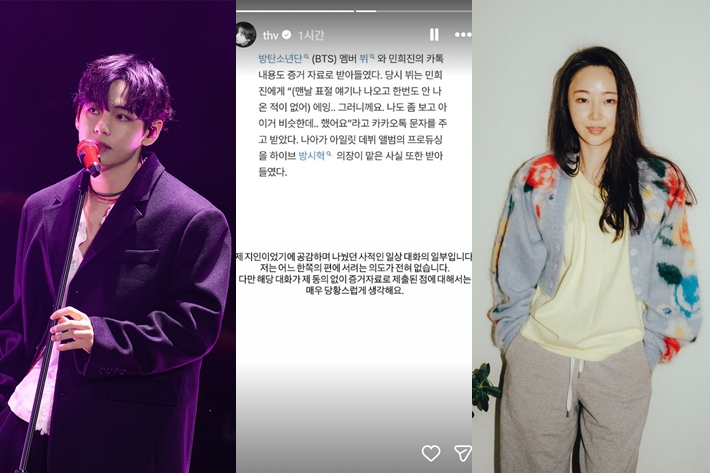 뷔-민희진 대화, 소송 증거로 채택됐다…"동의 없이 제출돼 당황"