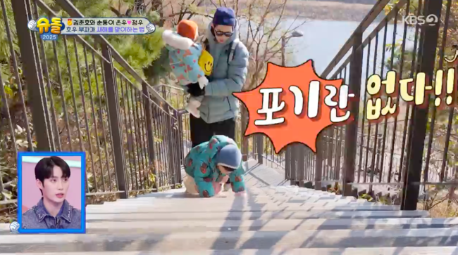 김준호子 은우, 국대 유전자 물려받았네..“포기란 없다” 집념의 등반 (‘슈돌’)[순간포착]