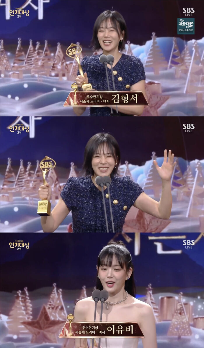 'SBS연기대상' 김형서, "서비스 많이 달라, 덕분에 살찌고 있다"…이유비와 '우수 연기상' 수상