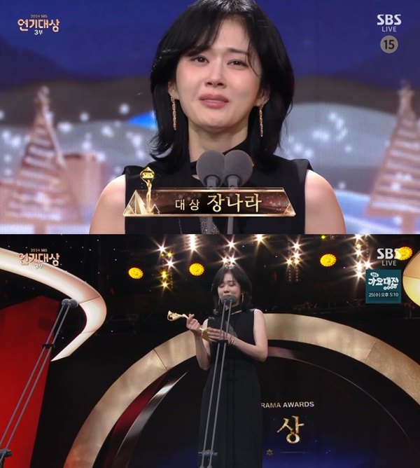 장나라, ‘2024 SBS 연기대상’ 대상...“믿기지 않아” 폭풍 눈물(종합)