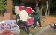 창원 박물관에 ‘日총독 석물’ 전시…대학생들 몰려가 망치로 파손